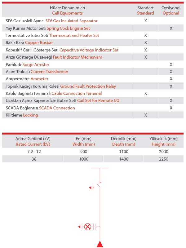 Bu hücrelerde standart olarak 3 kutuplu ve 3 konumlu (açık-kapalı-topraklayıcı olmak üzere) SF6 gaz izoleli ayırıcı kullanılmaktadır.